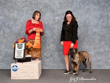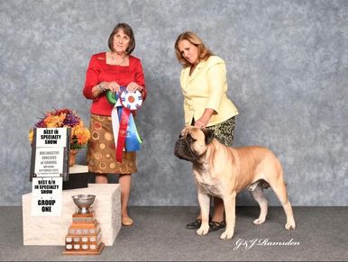 BISS BIS OHBIS BPISS BPIS Am/Cdn GCh Knatchbulls 5th Avenue Marquee ROM, Sire: Am/Cdn/UKC Ch Knatchbull’s Saxon 5th Avenue ROM Dam: Am/Cdn Ch Knatchbull’s Millie of Sanrose Owner Andrea Malatestinic. Breeder Helene Hansmann